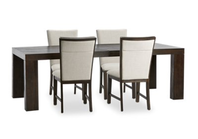 The grady 5 piece dining set features the grady dining table and four grady side chairs.